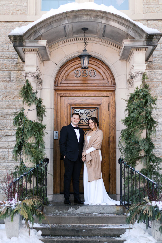 As a St. Paul College Club wedding photographer, I always look forward to documenting celebrations at this historic venue. Snow gently covering the ground, soft light reflecting off the historic architecture, and an atmosphere filled with warmth inside Eliza and Daniel’s elegant celebration was the perfect example of a luxury winter wedding in Minnesota.