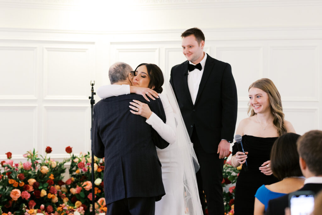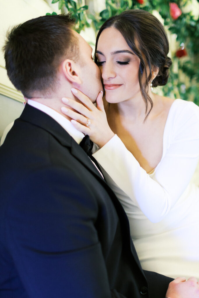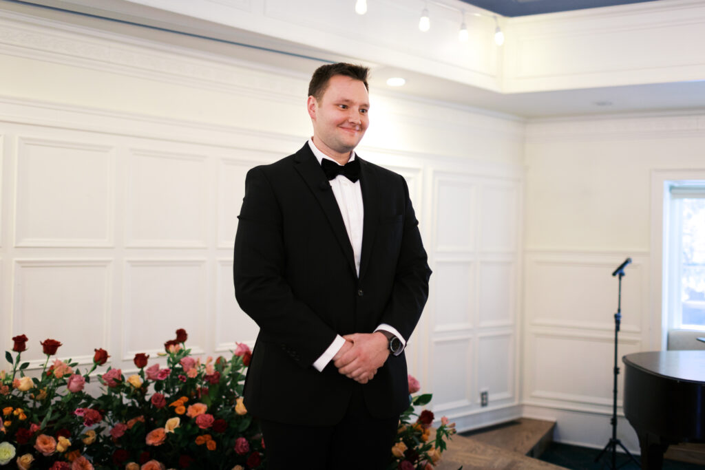 Before the ceremony, Eliza and Daniel shared an emotional first look inside the ceremony space. The room was beautifully arranged with lush roses, creating a romantic and elegant setting. When Daniel turned around and saw Eliza for the first time, his eyes filled with tears and unspeakable joy. It was quiet, heartfelt, and deeply personal.